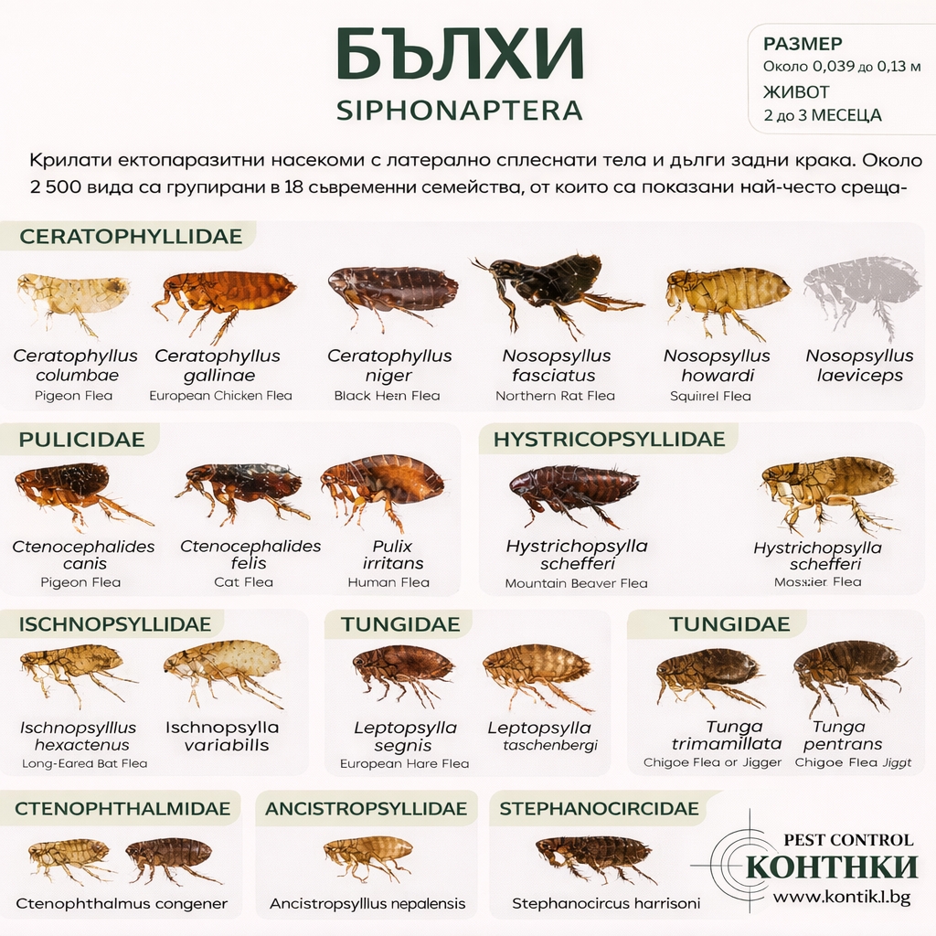 Бълхите са малки, безкрилни насекоми, които играят важна роля като паразити, нахлуващи в домакинства и животни. Макар размерът им да е малък, те са изключително неприятни и могат да причинят сериозни здравословни проблеми както за животните, така и за хората. Тези паразити са известни със способността си да смучат кръв и да пренасят различни болести, което ги прави изключително опасни в някои случаи. В тази публикация ще разгледаме подробно какво представляват бълхите, как се разпространяват, какви болести могат да пренасят и как да се справим с тях.