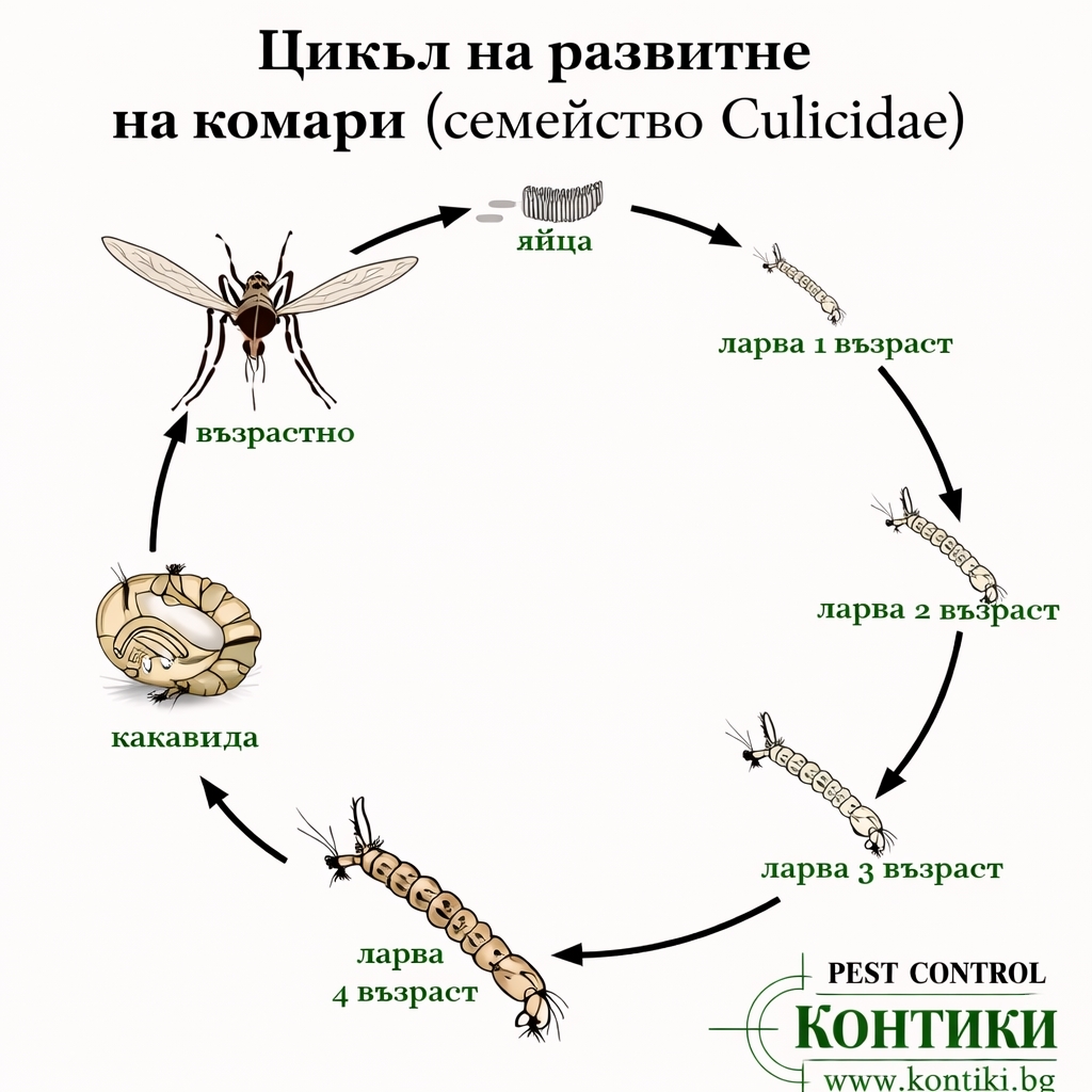 Жизненият цикъл на комарите включва четири стадия: яйце → ларва → какавида → възрастен. Всички ранни стадии (освен възрастния) протичат във вода.